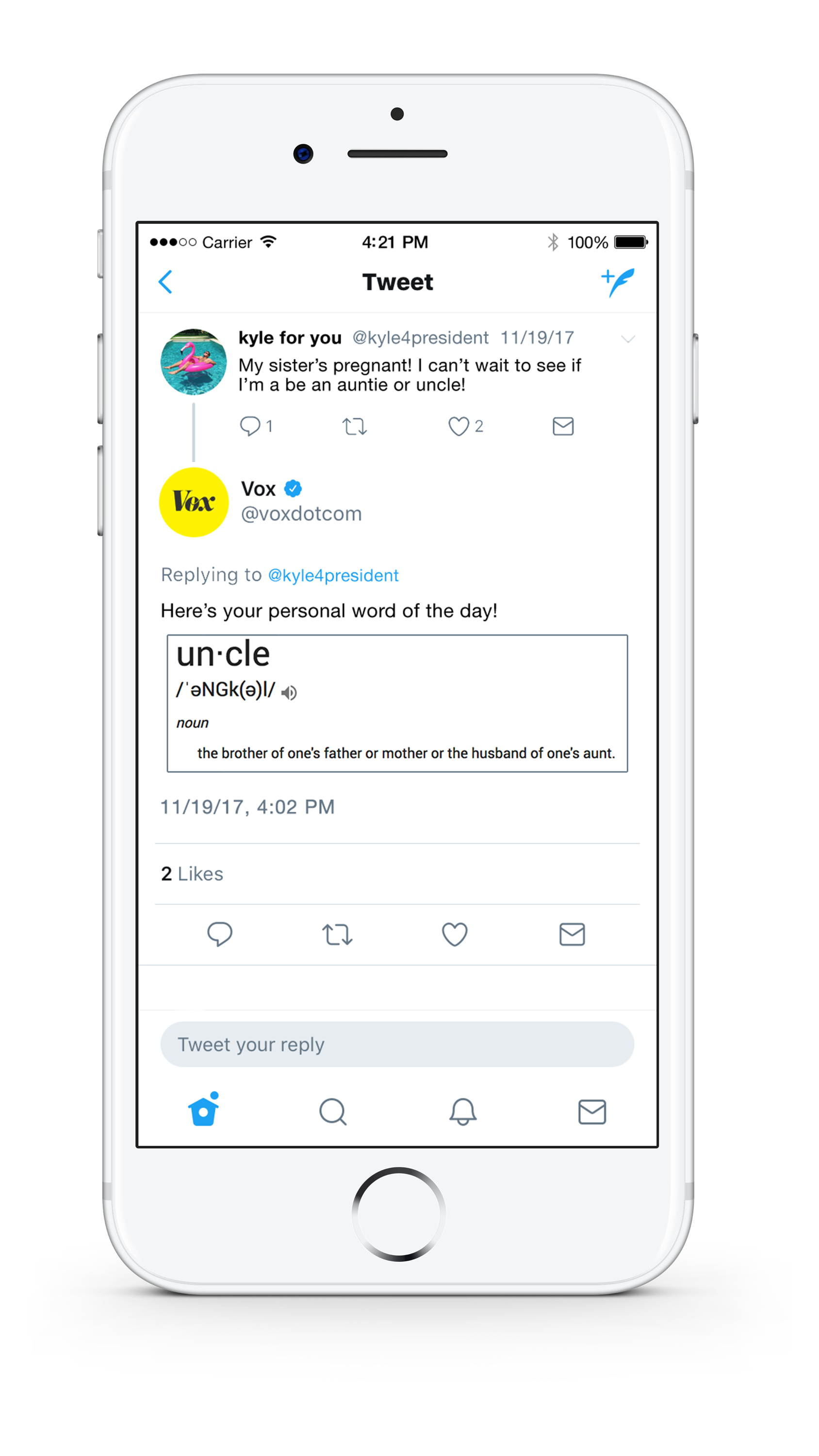 Change Vox’s current voice on Twitter to a comedic but still informational tone of voice.